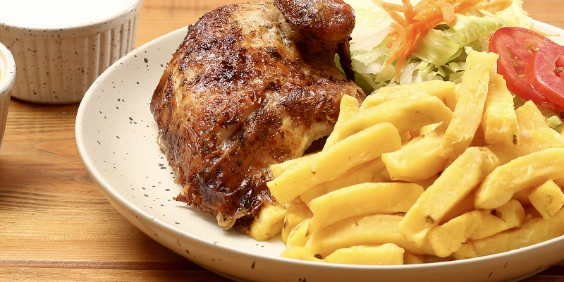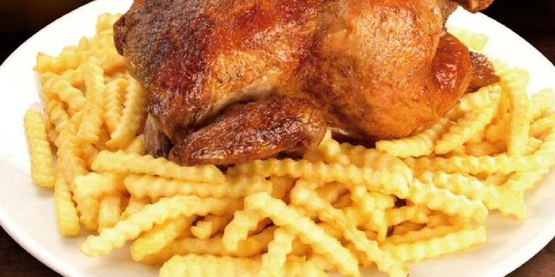 Para preparar papas fritas de pollo a la brasa en casa, puedes seguir estos pasos:
