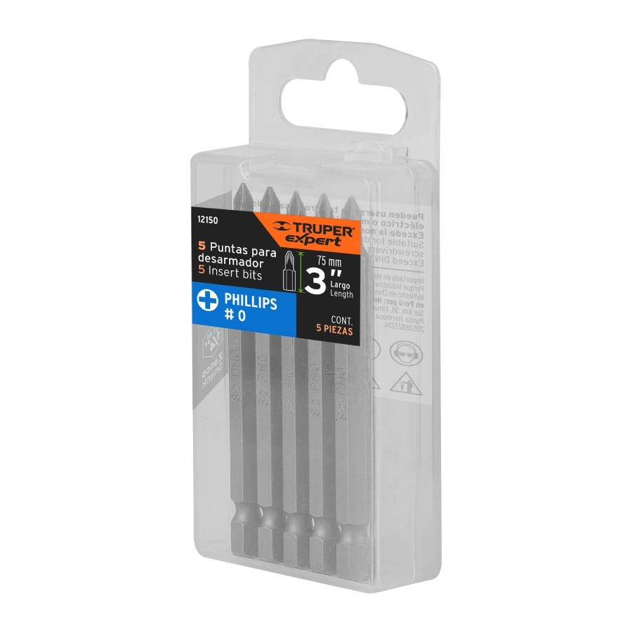 - Uso recomendado: Para atornillar tornillos tipo Phillips (#0 a #3) en trabajos donde se requiere mayor alcance o espacio para inserción profunda, tanto con desarmador manual como eléctrico.