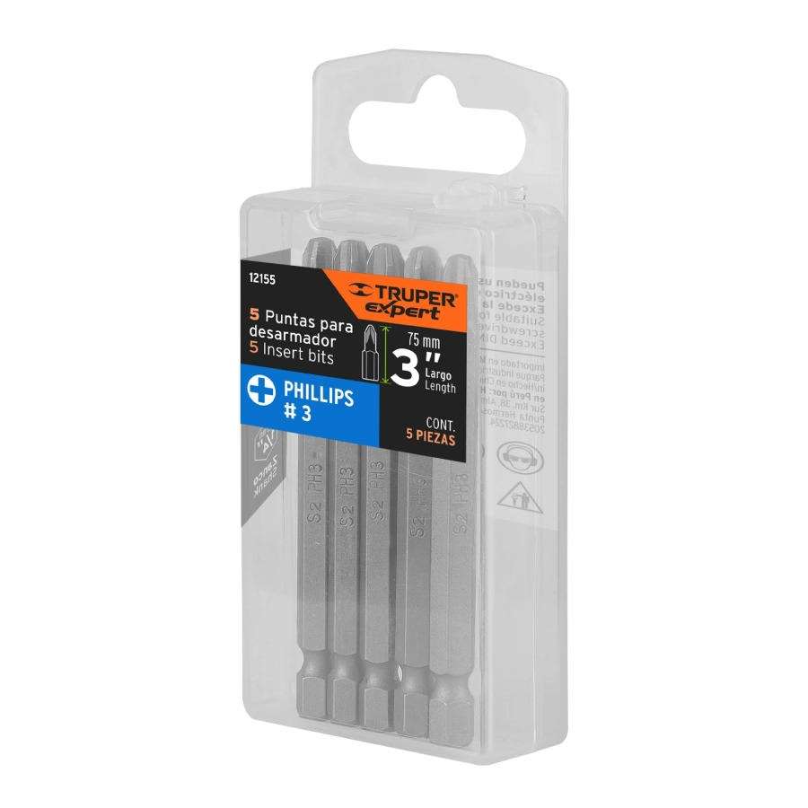 - Modelo / Referencias: Estuches de 5 puntas iguales tipo cruz (Phillips) de largo 3″ — códigos: