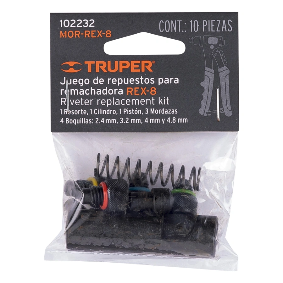 - Descripción: Kit de refacciones y mordazas para la remachadora REX-8.