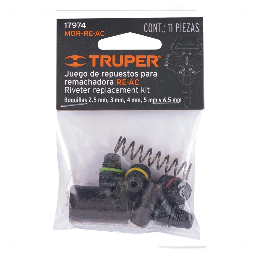 - Contenido: Incluye mordaza (cabeza de remachado) con boquillas (refacciones).