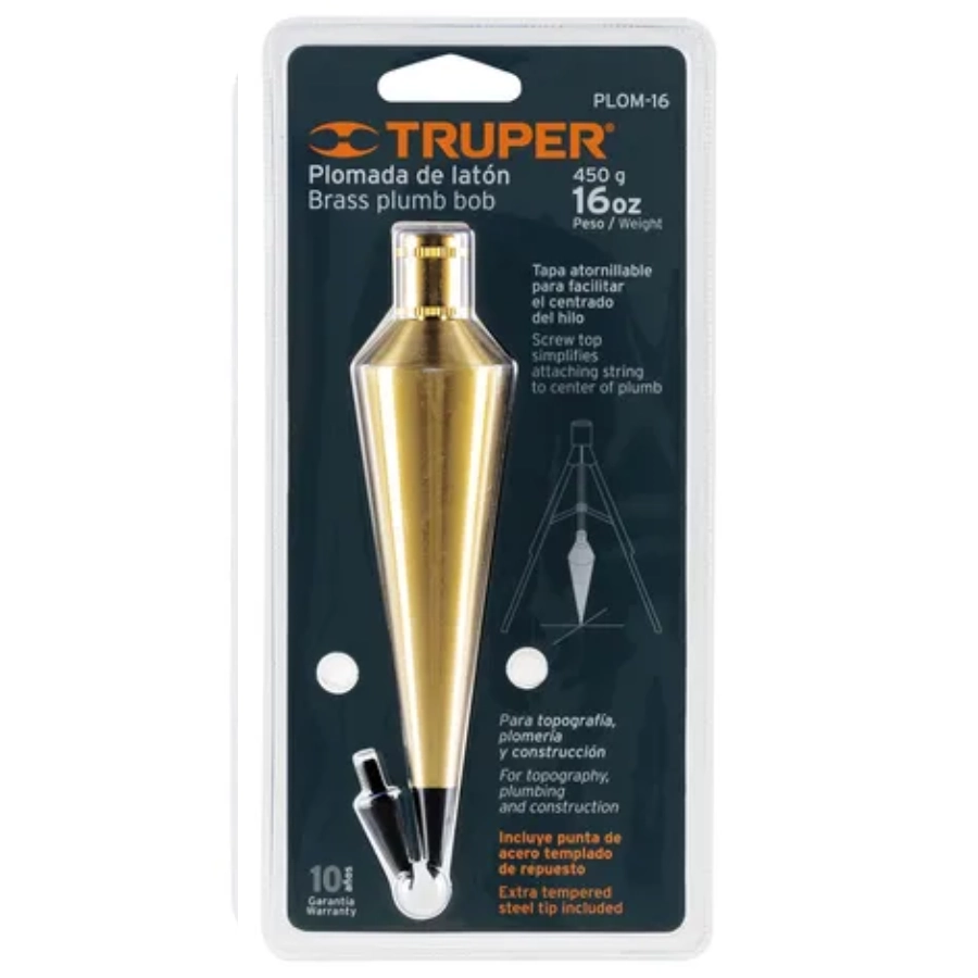 - Tipo de herramienta: Plomada de latón — utilizada para marcar verticales perfectas en construcción, carpintería, albañilería y trabajos de precisión.