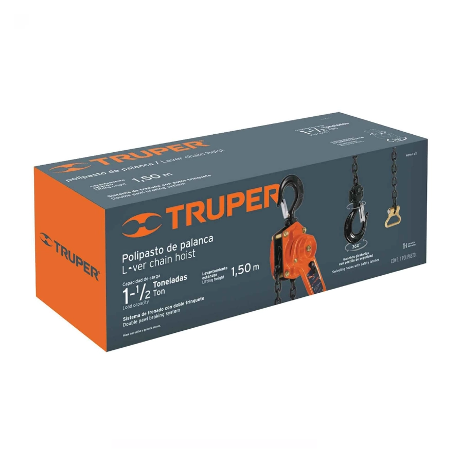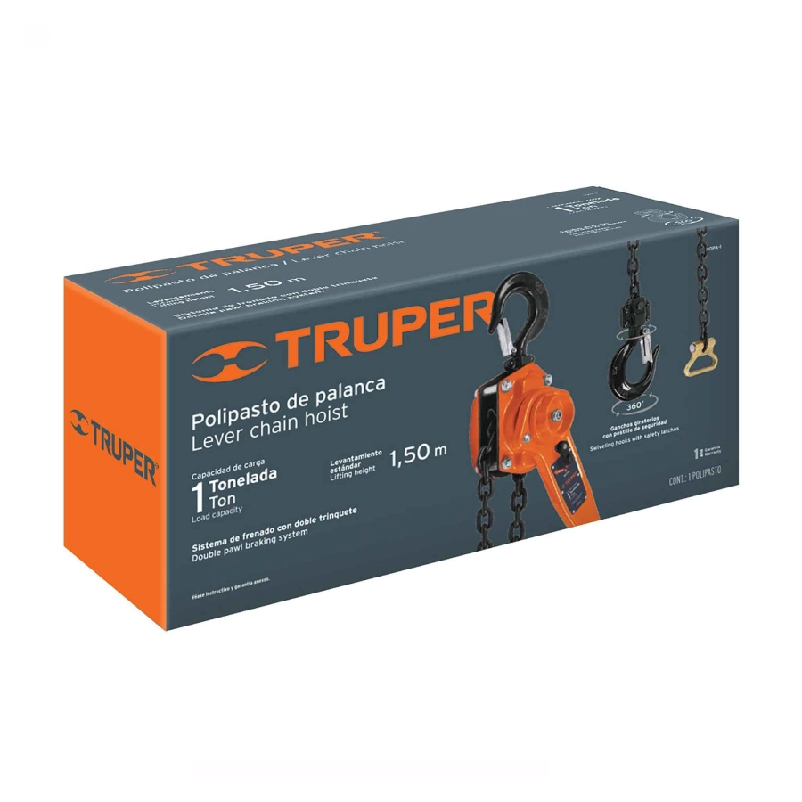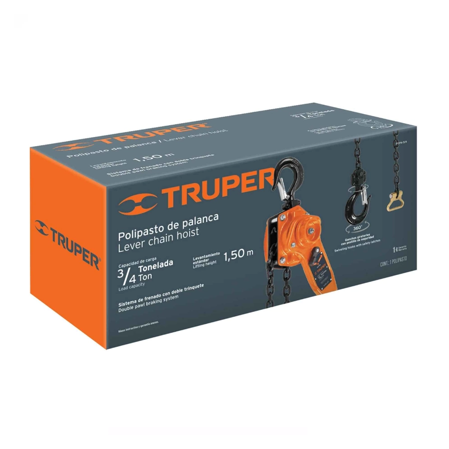 - Palanca con rotación de 360°, lo que permite maniobrar fácilmente y reducir el esfuerzo al levantar cargas.