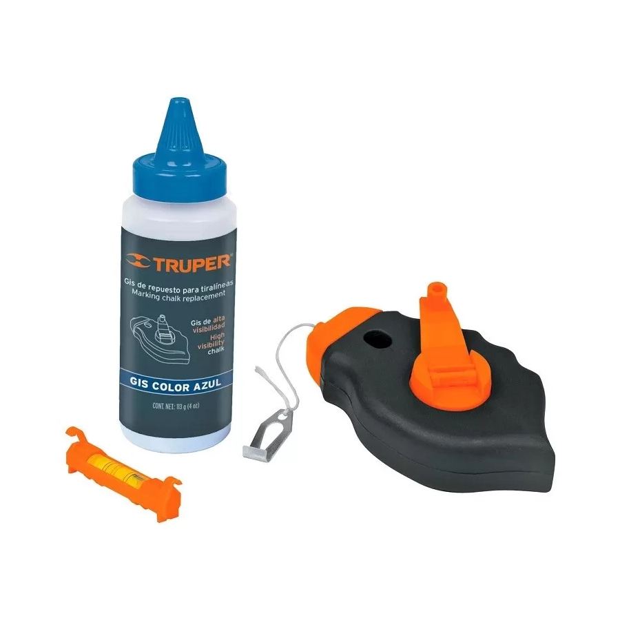 - Gis (tiza): incluye bote de tiza azul de alta visibilidad (4 oz) para trazar líneas claras.